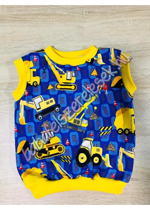 királykék traktoros mintával nyomott, fiúsmellény, béléssel.