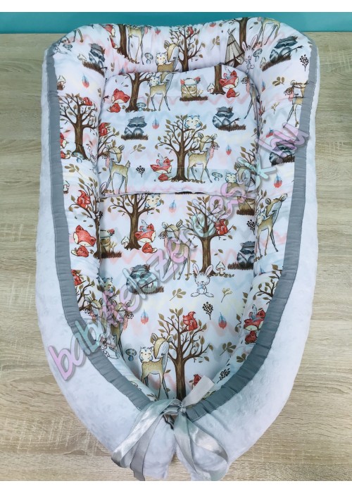 - Pihe-puha minky-s hátoldallal: Az egyik oldala bézs erdei állatos mintájú 100% pamutvászonból készül, a másik oldala pedig pihe-puha meleg minky anyagból, közötte 2cm vastag vatelinnel bélelve.