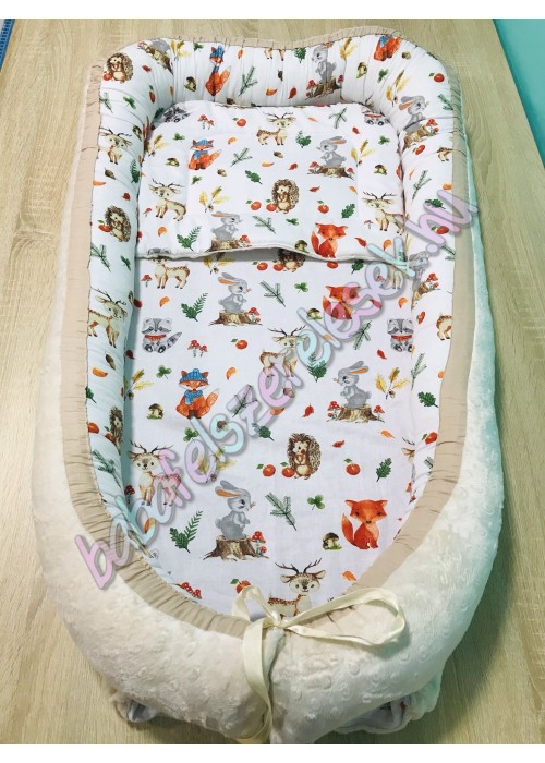 Babafészek - erdő állatai + pihe-puha bézs minky