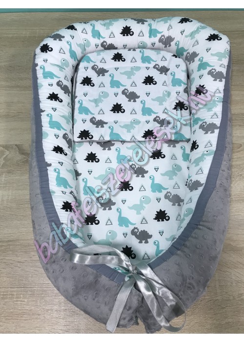 Babafészek - menta-szürke dínós + pihe-puha minky