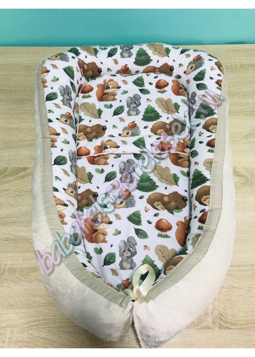 Babafészek - őszi erdei állatos + pihe-puha bézs minky