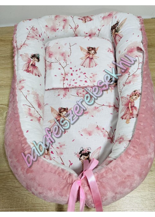 Babafészek - rózsaszín tavasztündéres + pihe-puha rosegold minky