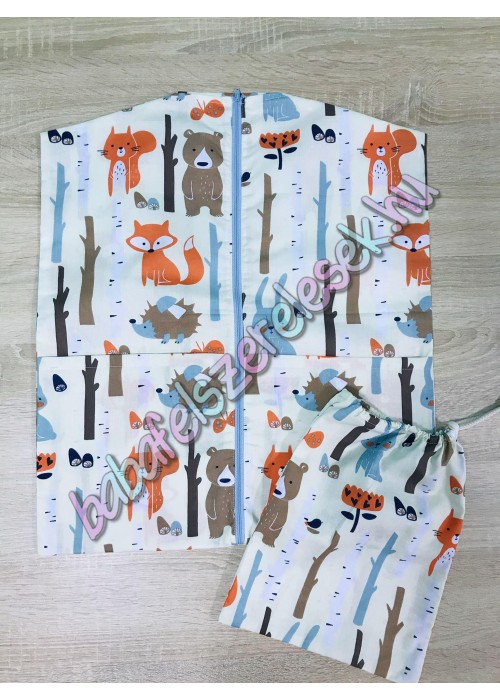 Bézs erdős mintájú 100% pamutvászonból készül, kb. 45X50-es méret, elől két zsebbel, végig cipzározható.(fogassal feltehető)