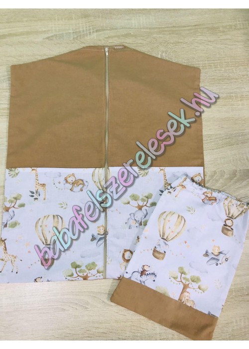 Bézs szafaris mintájú 100% pamutvászonból készül, kb. 45X50-es méret, elől két zsebbel, végig cipzározható.(fogassal feltehető)