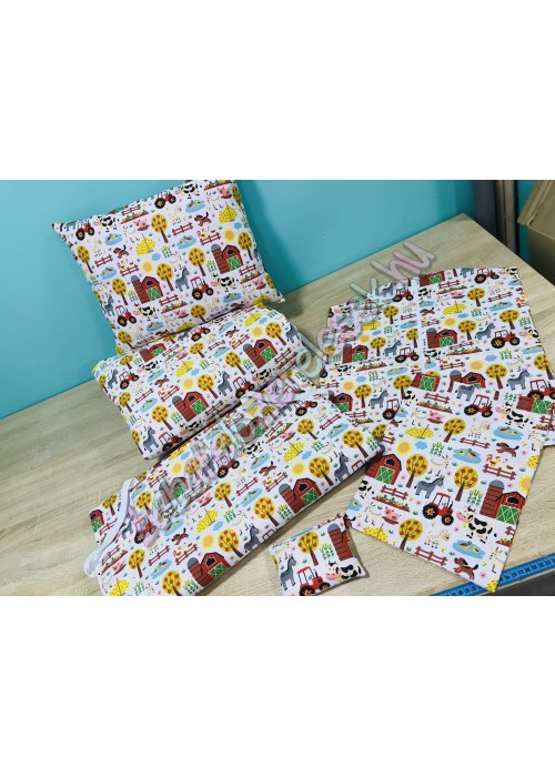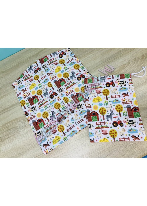Mindkét oldala farmos traktoros mintájú 100% pamutvászonból készül, Végén cipzár található a gyors és egyszerű le- és felhúzás érdekében.