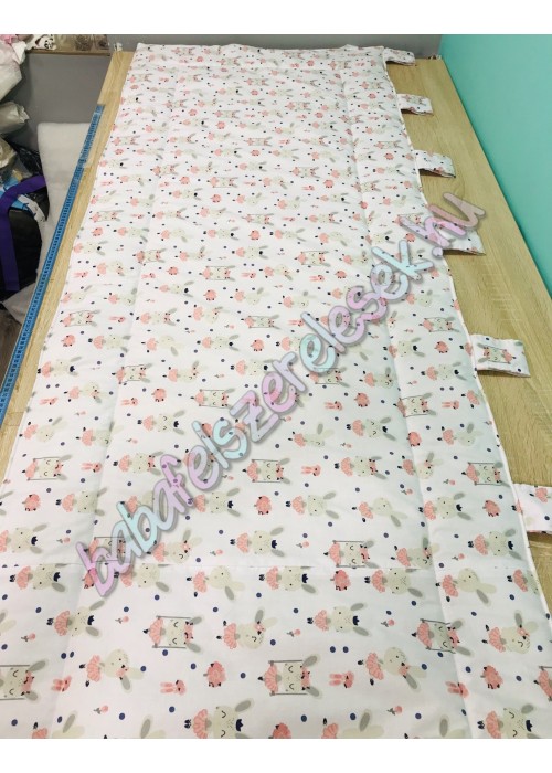 - A falvédő dupla anyagból készül, külseje fehér balerina nyuszis mintás 100% pamutvászon, hátulja egyszínű 100% pamutvászon, közötte 150gr vatelinnel bélelve.