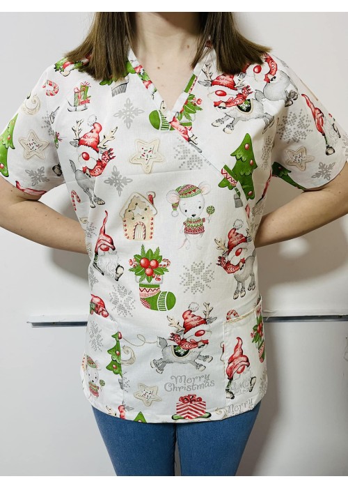 Orvosi-Nővérke tunika - fehér rénszarvasos