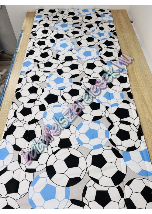 - A falvédő dupla anyagból készül, külseje kék-fekete focilabdás mintás 100% pamutvászon, hátulja egyszínű 100% pamutvászon, közötte 1,5cm vastag vatelinnel bélelve.