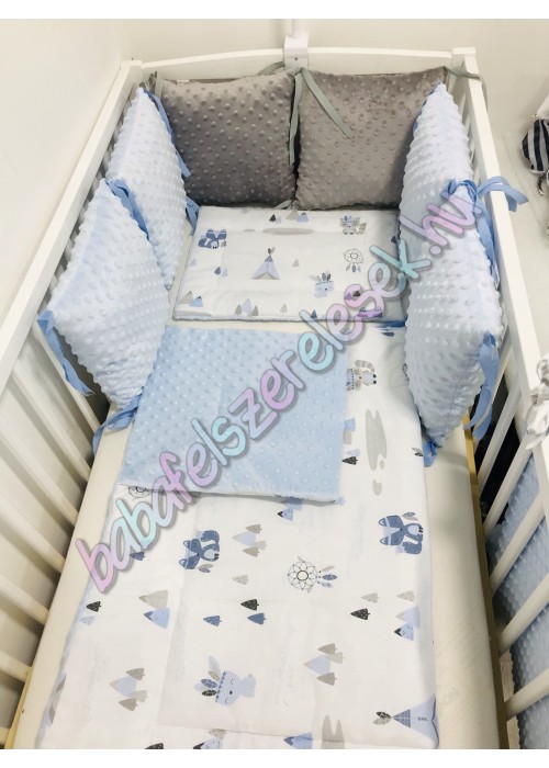 Komplett babaágynemű szett - kék-szürke indián rókás