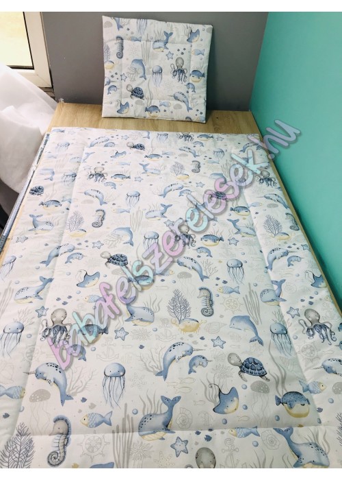 Kék tengeres mintájú ovis szett: (takaró + párna)