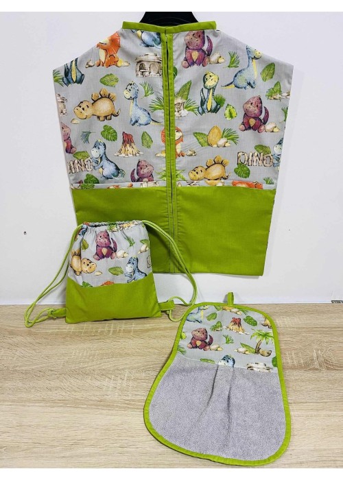 Szürke-lime dínós - Új design Ovizsák+Tornazsák+Törölköző