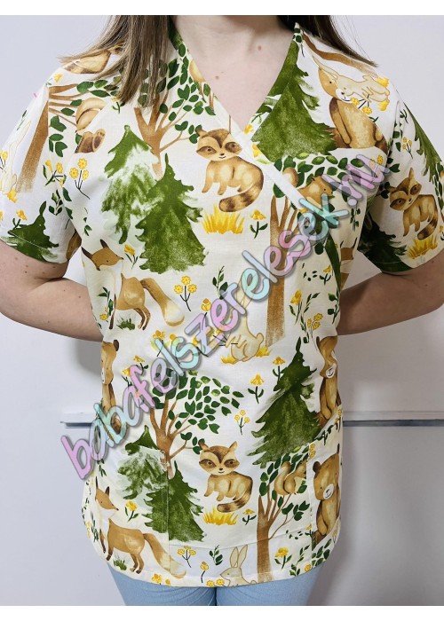 Orvosi-Nővérke tunika - XS fenyőfás erdei állatos