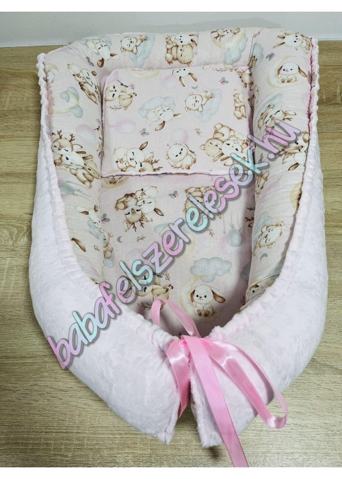 Babafészek - rózsaszín állatcsaládos + pihe-puha világosrózsaszín minky