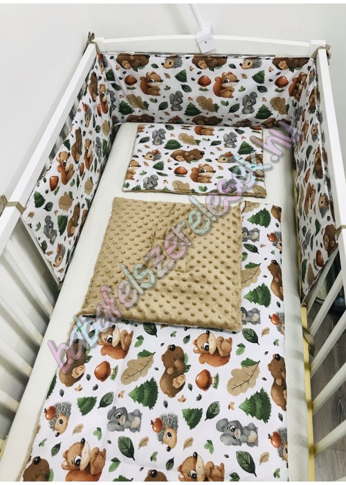 - Pihe-puha minky-s hátoldallal: Az egyik oldala őszi erdei állatos mintájú 100% pamutvászonból készül, a másik oldala pedig pihe-puha meleg minky anyagból, közötte 2cm vastag vatelinnel bélelve.