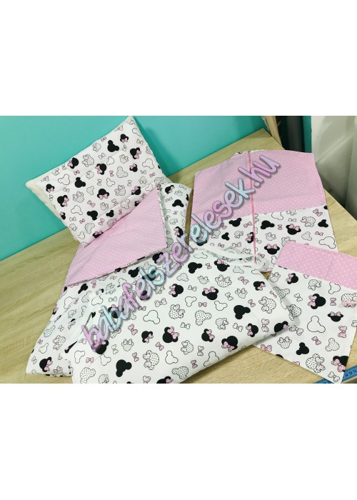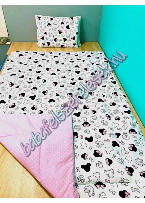 Rózsaszín minnie fejes mintájú ovis szett: (takaró + párna)