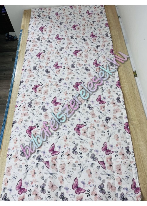 - A falvédő dupla anyagból készül, külseje pink csoda pillangós mintás 100% pamutvászon, hátulja egyszínű 100% pamutvászon, közötte 1,5cm vastag vatelinnel bélelve.