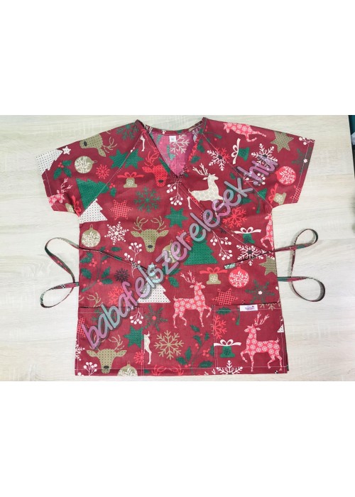 • Orvosi-Nővérke tunika - piros-arany rénszarvasos