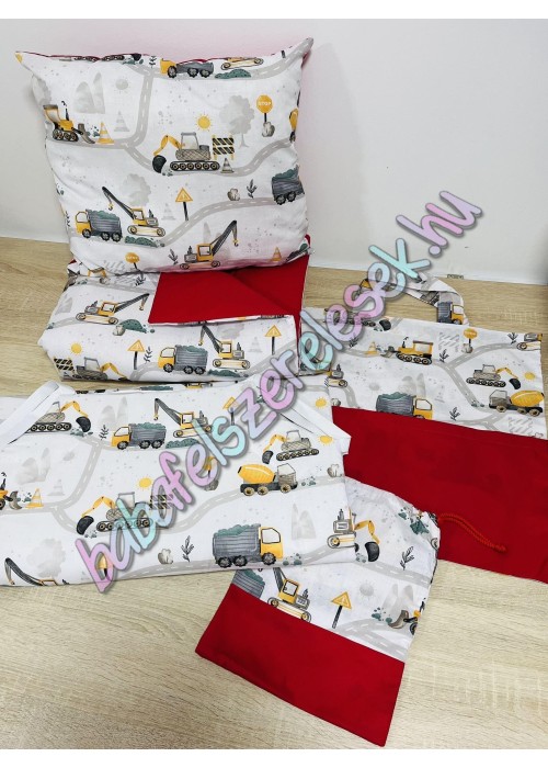 Piros-sárga-szürke útépítős mintájú ovis szett: (takaró + párna)