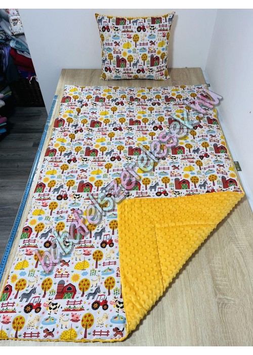 Prémium ágynemű: egyik oldala Farmos traktoros mintájú 100% pamutvászonból készül, a másik oldala pedig pihe-puha meleg minky anyagból