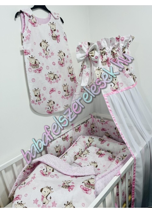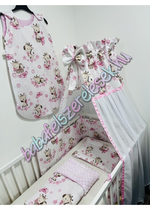 Babaágynemű szett - Rózsaszín álom zsiráfos