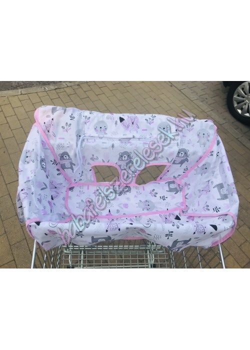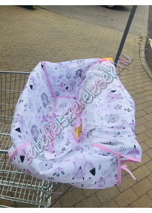 Rózsaszín-szürke állatos bevásárlókocsi huzat