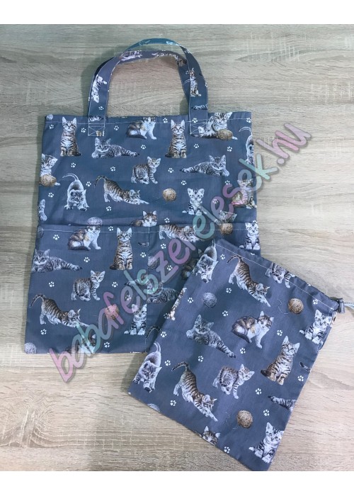 szürke alapon cicás mintájú tornazsák