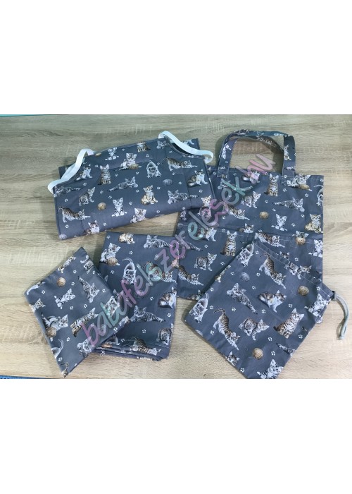 szürke alapon cicás mintájú ovizsák