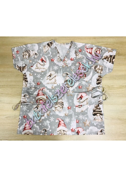 Orvosi-Nővérke tunika - szürke alapon piros-barna manós