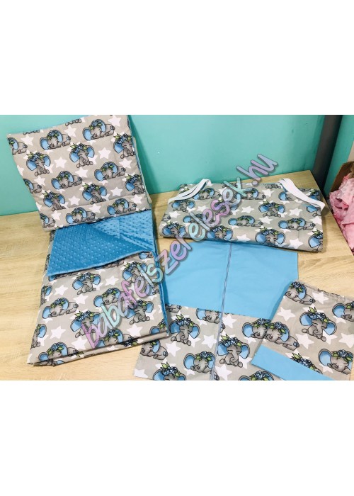 szürke-kék elefántos mintájú ovis szett: (takaró + párna)