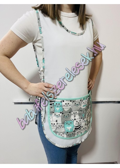 Fehér lapköpeny – menta-szürke cicás