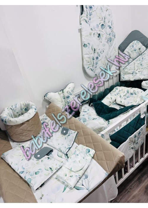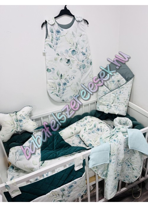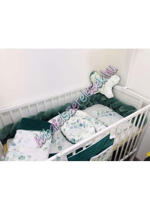 Exkluzív velvet babaágynemű szett - zöld eukaliptuszos